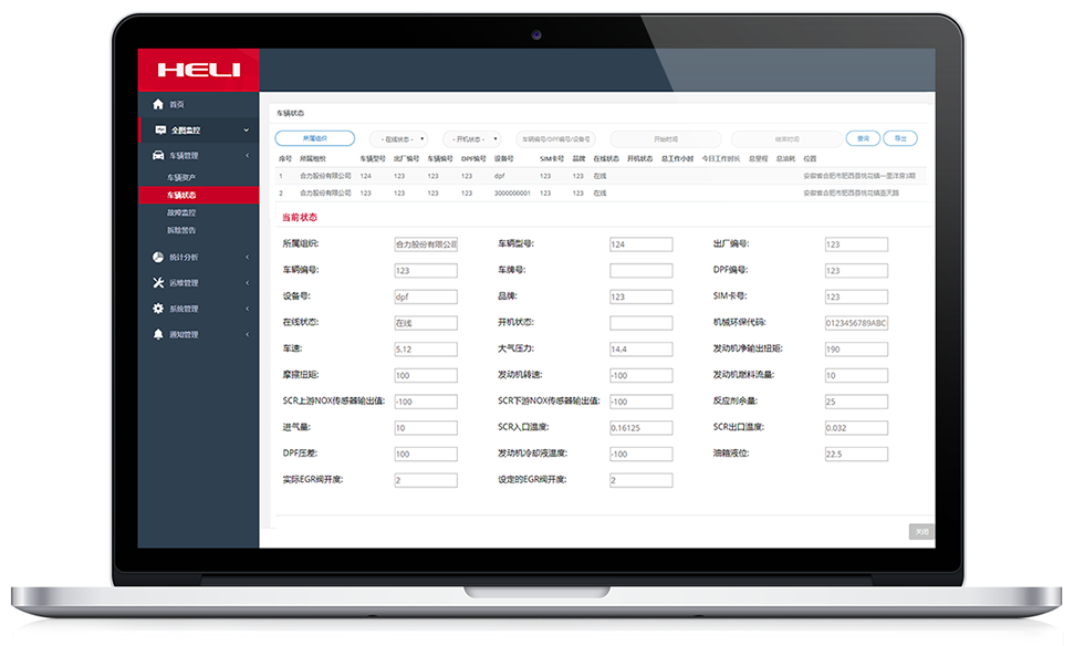 車輛故障狀態及顆粒物排放濃度監控、故障代碼顯示。保障車輛運行安全。為車輛維保提供指導依據。